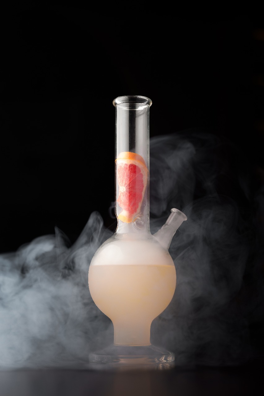Non-Alcoholic Sober Gin, Lime Syrup, Honey Syrup, Guava Juice, Grapefruit Tonic, Clarified.