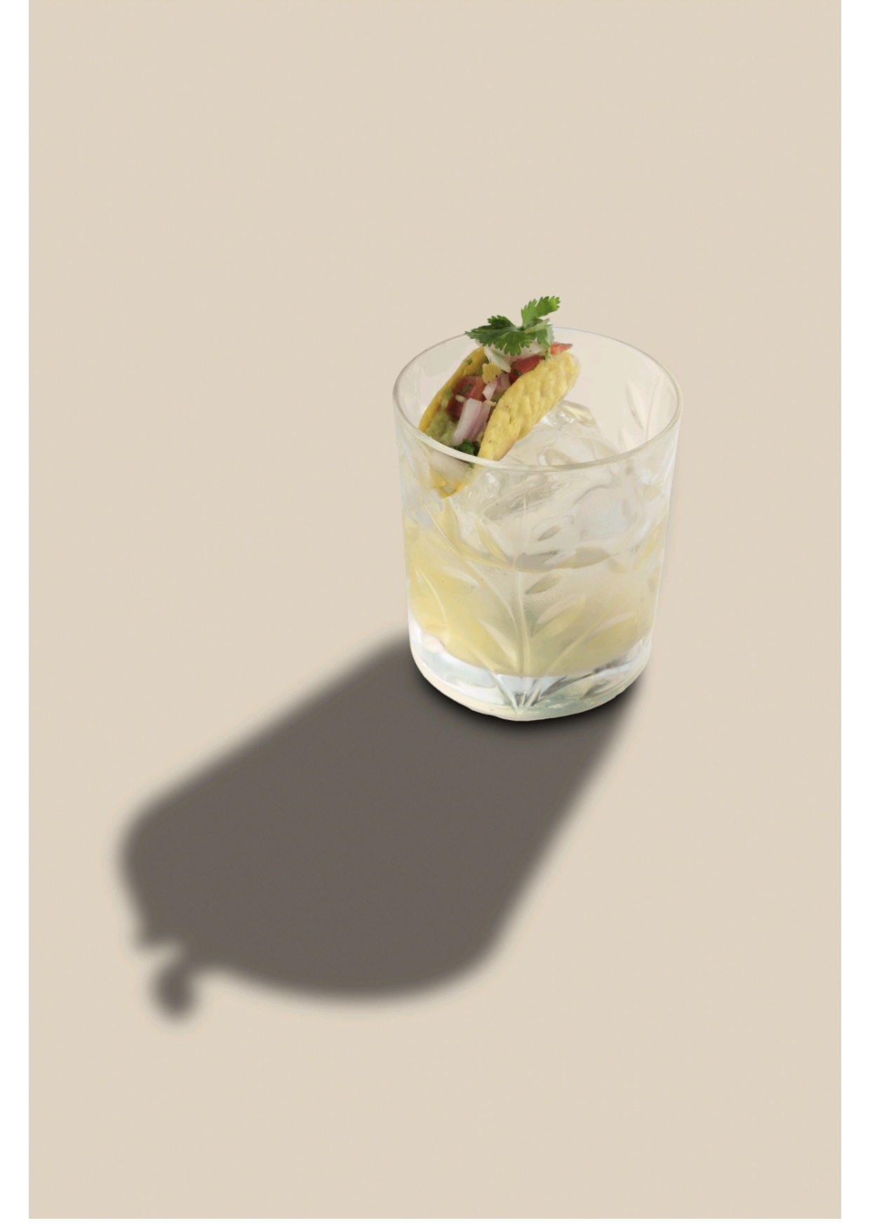 Jalapeno Infused Gin, Lime Juice, Guacamole, Sal De Puebio, Hard Tacos Shell, Clarified Method